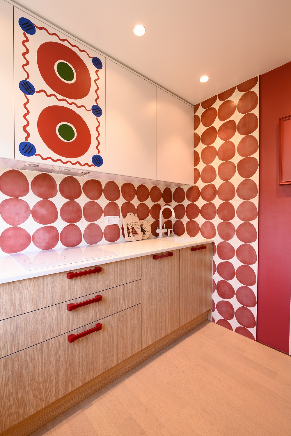 Люстра в абажуре из кистей для рисования в обеденной зоне — одна из фишек проекта.